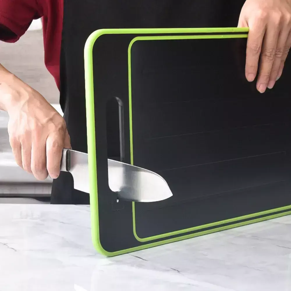 Transforme sua rotina na cozinha com uma tábua inteligente que corta, descongela e afia — tudo em um único produto.